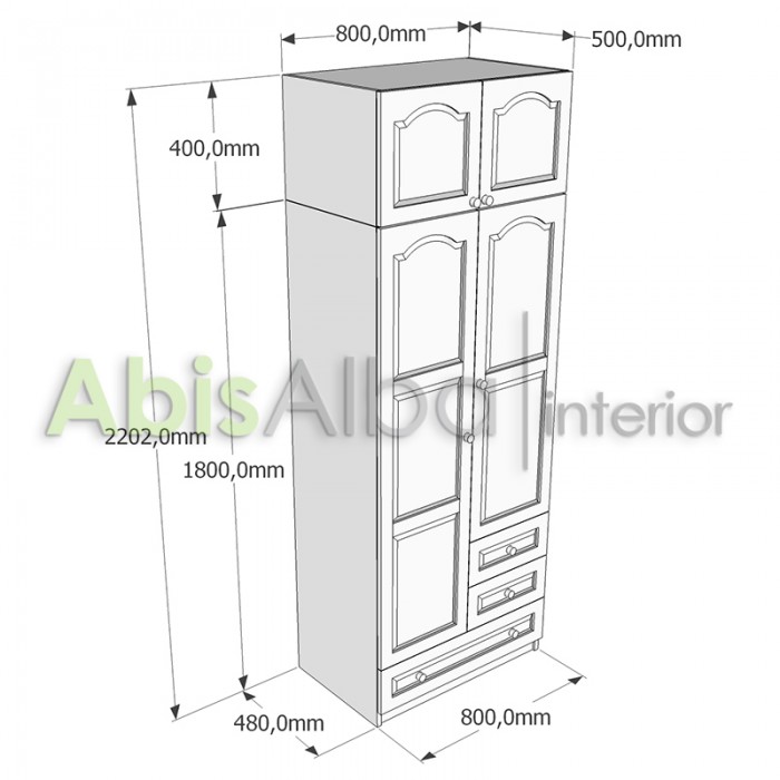 ДВУКРИЛЕН ГАРДЕРОБ С ЛОСТ, ТРИ ЧЕКМЕДЖЕТА И НАДСТРОЙКА - W230