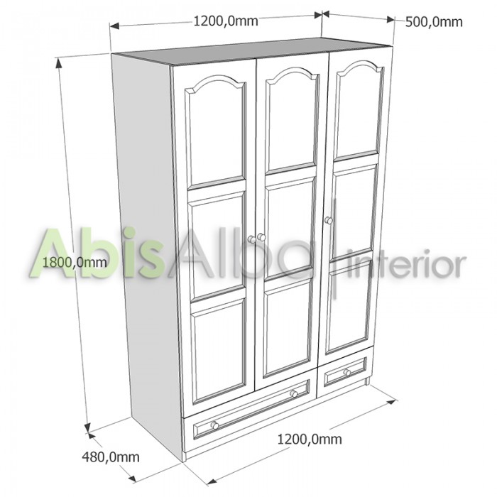 с размери 120см (ширина) х 50см (дълбочина) х 180см (височина)