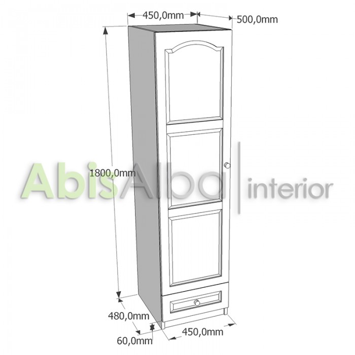 с размери 45см (ширина) х 50см (дълбочина) х 180см (височина)
