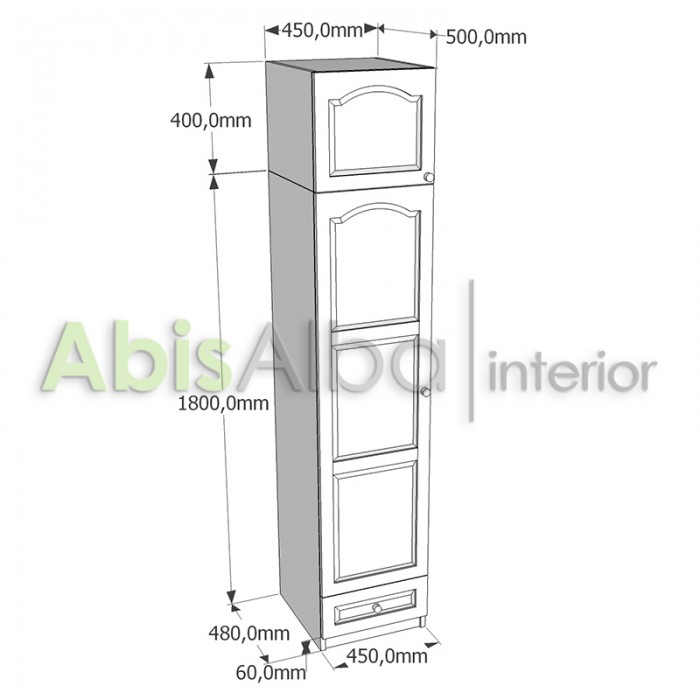 с размери 45см (ширина) х 50см (дълбочина) х 220см (височина)