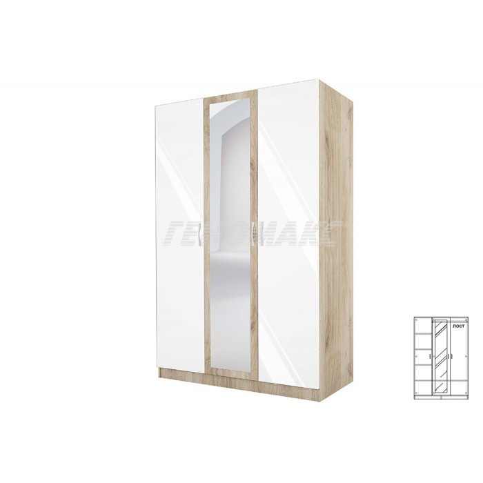 ТРИКРИЛЕН ГАРДЕРОБ С ОГЛЕДАЛО СИТИ 1003 - W361