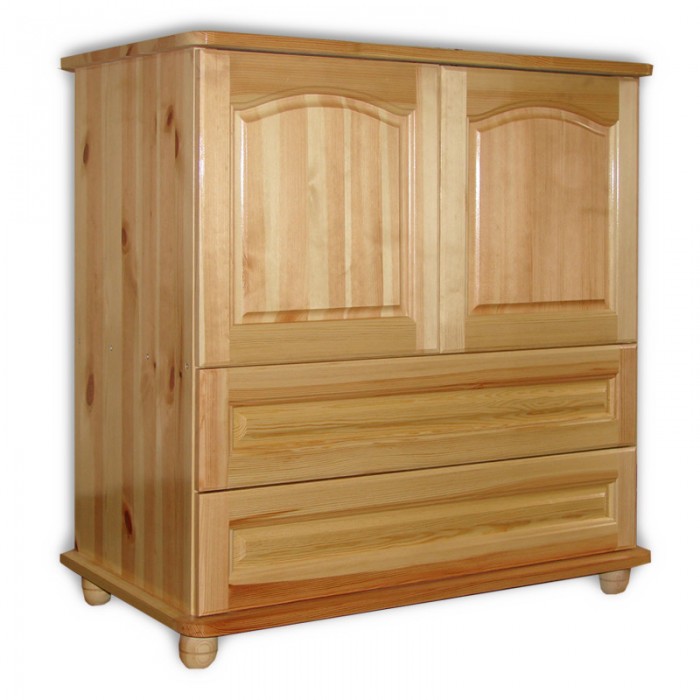 с две големи чекмеджета със стандартни водачи, дървени дръжки и дъна от фазер