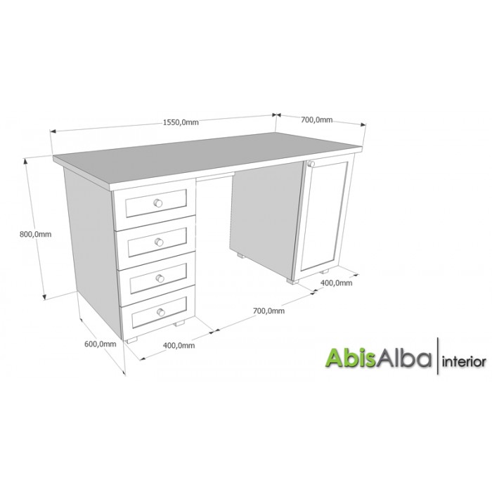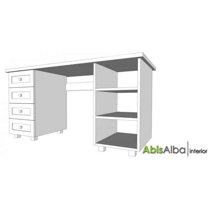 с четири чекмеджета със стандартни водачи, дървени дръжки и дъна от фазер